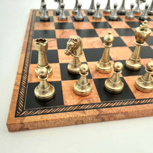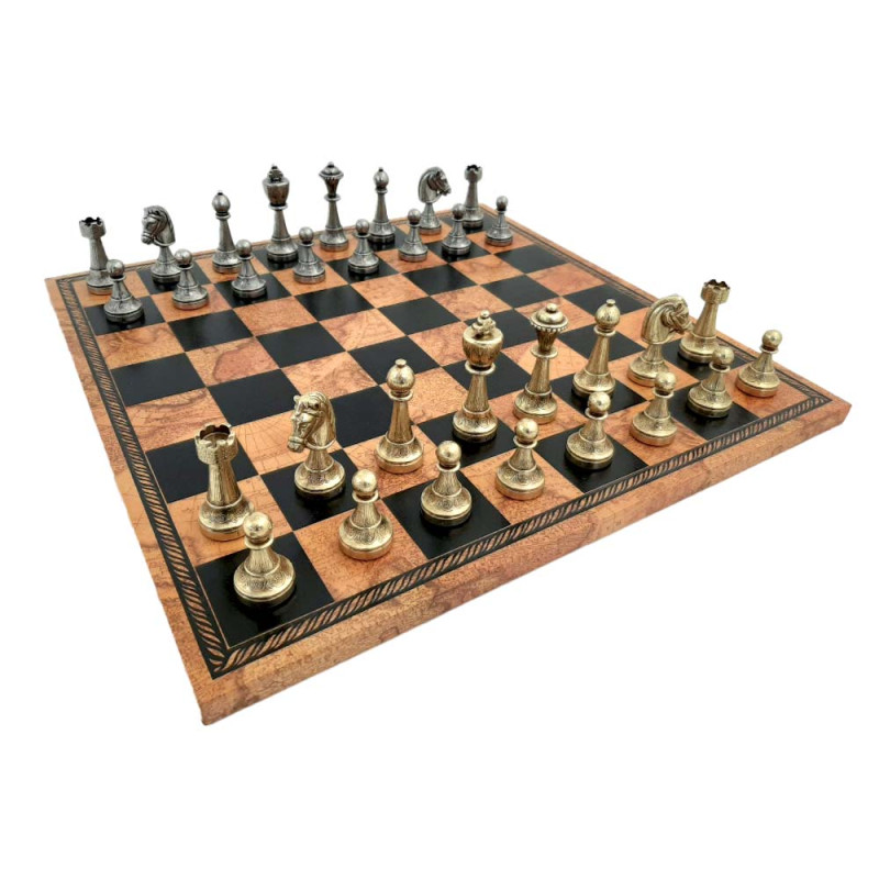 Pour créer cette gamme d'échiquiers d'une grande qualité, des matériaux précieux sont soigneusement choisis, comme le bois de bruyère, d'orme et de noyer ; des pierres semi-précieuses comme l'onyx, le marbre de Carrare et la malachite, tandis que les pièces d'échecs sont façonnées dans des métaux durables comme le laiton et le bronze, dans divers finitions allant du satin classique à l'or et à l'argent.