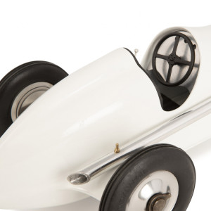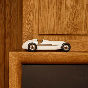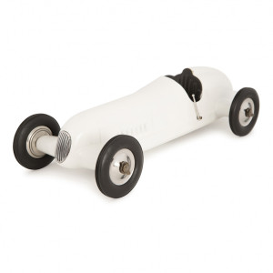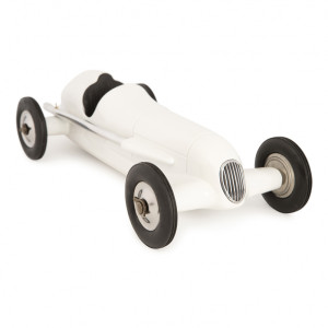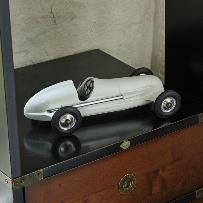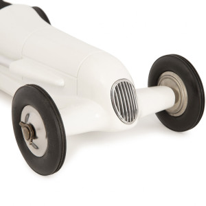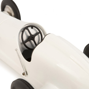 Cette parfaite réplique d'un jouet des années 30 a été fabriquée avec le même souci du détail que les originaux. Elle reprend les lignes des célèbres "Flèches d'Argent" ("Silberpfeil" en allemand), nom donné aux voitures de course (Mercedes-Benz et Auto Union) ayant dominé les Grands Prix dans la fin des années 30.