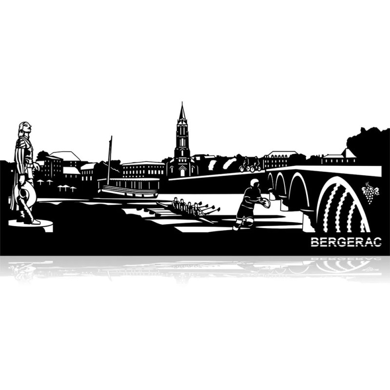 Un mur tristement vide, vous cherchez une idée pour le mettre en valeur... Cette décoration murale en métal découpé reprenant les lignes de la ville de Bergerac dévoile de jolis jeux d'ombres tout en partageant quelque chose qui vous tient à coeur. Elle offre une belle vue où sont regroupés de façon harmonieuse des éléments patrimoniaux caractéristiques de cette ville d'art et d'histoire de la Dordogne.