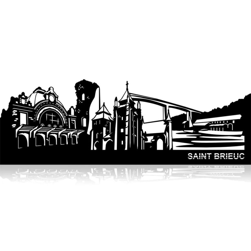 Un mur tristement vide, vous cherchez une idée pour le mettre en valeur... Cette décoration murale en métal découpé reprenant les lignes de la ville de St-Brieuc dévoile de jolis jeux d'ombres tout en partageant quelque chose qui vous tient à coeur. Elle regroupe les monuments et éléments patrimoniaux caractéristiques de cette ville des Côtes-d'Armor.