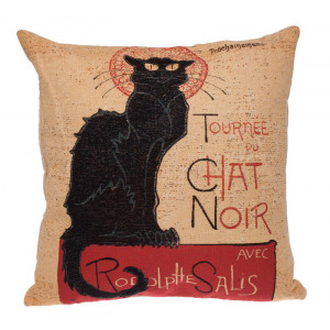 Housse de coussin dont le tissage fait référence à la tenture intitulée "La Dame à la Licorne". Cet ensemble se compose de 6 tapisseries, les scènes différentes expriment les cinq sens, la sixième tapisserie est intitulée "A mon seul désir". Cette tapisserie est exposée au Musée de Cluny.