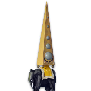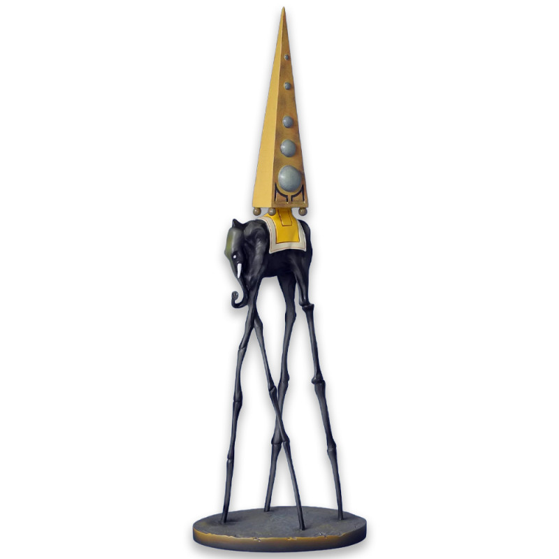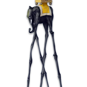 Cet éléphant aux longues pattes, portant un obélisque sur son dos, provient du tableau La Tentation de Saint Antoine de Dalí - 1946.