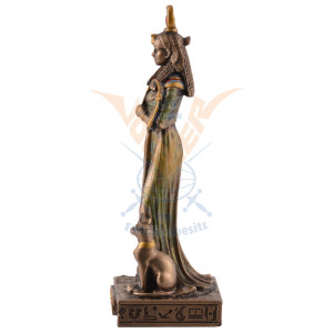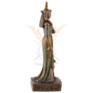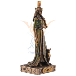 Mini figurine détaillée représentant Maât, déesse de l'harmonie cosmique, de la conduite morale, de l'ordre et de l'équilibre du monde, de l'équité, de la paix, de la vérité et de la justice. Elle est la fille de Rê, et compagne de Thot.