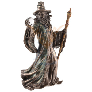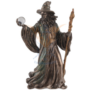 Statuette peinte à la main de Merlin, le plus célèbre enchanteur des légendes arthuriennes. Conseiller du roi Arthur, maître des arts occultes et gardien des secrets anciens, il incarne la sagesse, la prophétie et la magie des druides celtes.