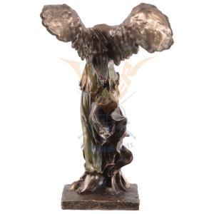 Statuette peinte à la main de Niké, déesse grecque de la victoire. Fille du Titan Pallas et de Styx, elle incarne le triomphe que ce soit dans les batailles comme dans les compétitions. Ailée, légère et élancée, elle vole au-dessus des mortels pour récompenser les plus valeureux d'entre eux.