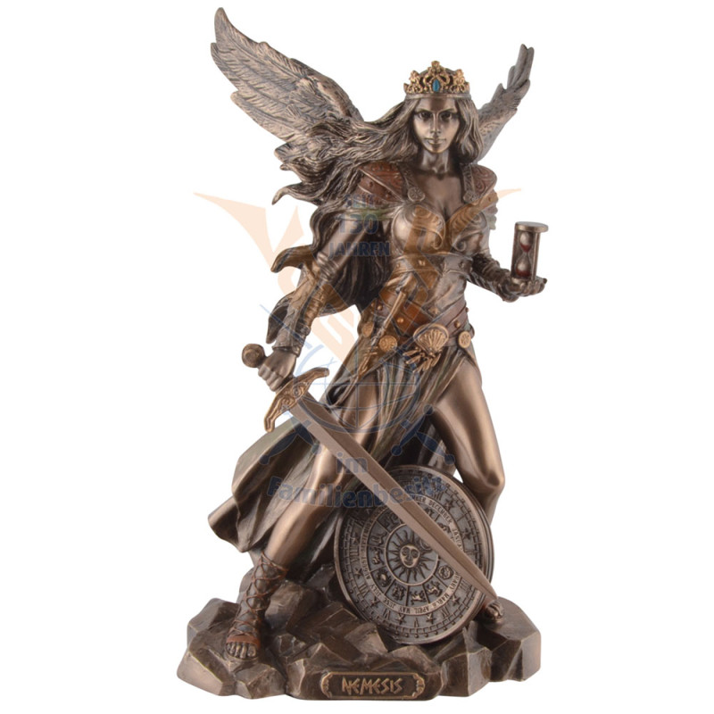 Représentée avec ses attributs symboliques: la roue, le sablier ou l'épée, elle veille à rétablir la justice avec une impartialité implacable. Son expression calme mais déterminée et les détails soignés de cette pièce rappellent la force silencieuse de celle qui remet chacun à sa place.