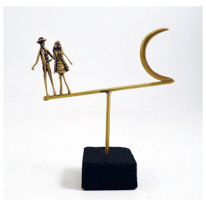 Cette sculpture en bronze massif est une création unique et originale de l'artiste grec Georges Roumanas. Elle représente un couple sur une balance, prouvant que l'amour est plus fort que tout.