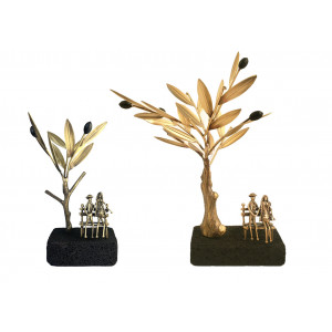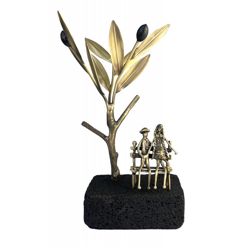 Cette création en bronze massif est une réalisation unique et originale de l'artiste grec Georges Roumanas. Elle représente un couple assis sur un banc près d'un olivier, symbole de longévité, de force ou encore de fidélité.