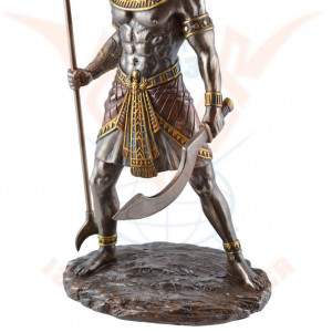 Cette sculpture patinée bronze représente le dieu Horus, fils d'Osiris, l'enfant divin de la triade sacrée. Il est l'un des nombreux dieux associés au faucon. Son nom signifie "celui qui est au-dessus."