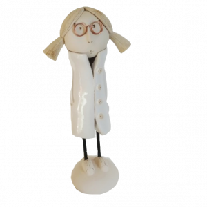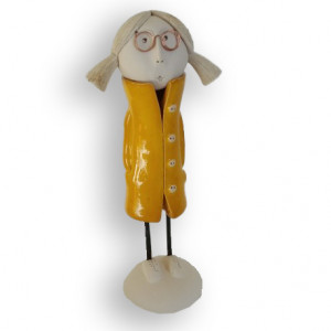 Cette statuette représentant une jeune fille à lunettes est une création en céramique émaillée réalisée entièrement à la main par l'artiste Markus.