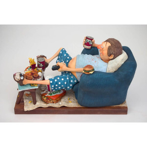 Ses autres passions sont les pop corn et les hamburgers qu’il alterne avec d’énormes gorgées de bière glacée. Mon Dieu! Comme elle est belle la vie! S’il ne devait pas aller au travail, il aurait l’impression d’être au paradis.