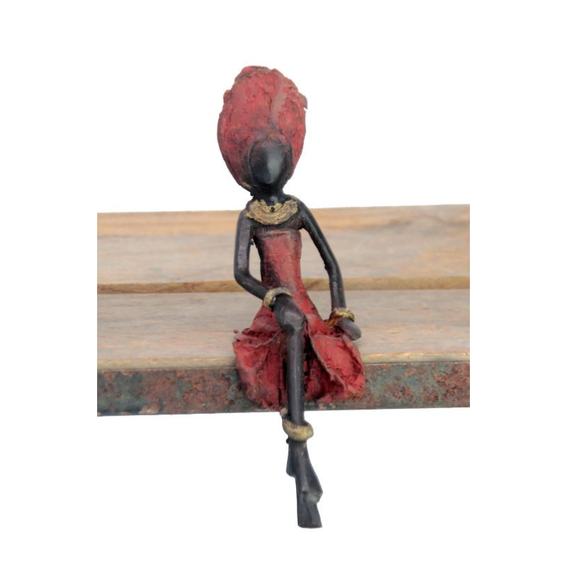 Statuette bronze d'Issouf assise - 15 cm - Rouge