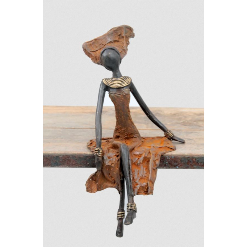 Statuette en bronze massif fabriquée à la cire perdue, réalisée dans l'atelier de l'artiste Issouf Bonkoungou à Ouagadougou. A poser sur le rebord d'une étagère ou tout autre meuble.