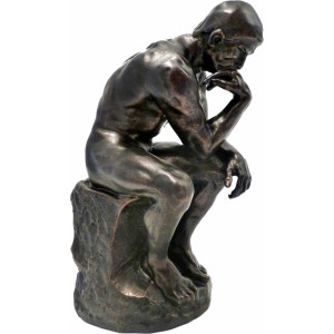 Statuette d'après Auguste Rodin (1840-1917). Le Penseur faisait à l'origine partie des 'Portes de l'Enfer'. Assis dans le tympan, le penseur contemple l'enfer: il juge les personnes d'en bas mais est également enfermé. C'est entre le romantisme et l'impressionnisme qu' Auguste Rodin nous a livré quelques-unes des sculptures les plus célèbres de l'hisoire.