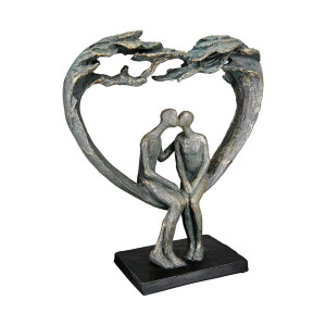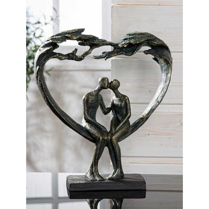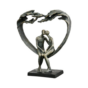 Cette sculpture représente un couple inscrit dans un cœur formé par deux arbres. Ils s'embrassent tendrement.