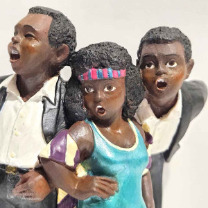 Ce trio de choristes vous apporte de la joie! Il fait partie d'une collection de petites statuettes à collectionner représentant des musiciens de jazz. Cette statuette a été dessinée par l'artiste Ed Van Rosmalen.
