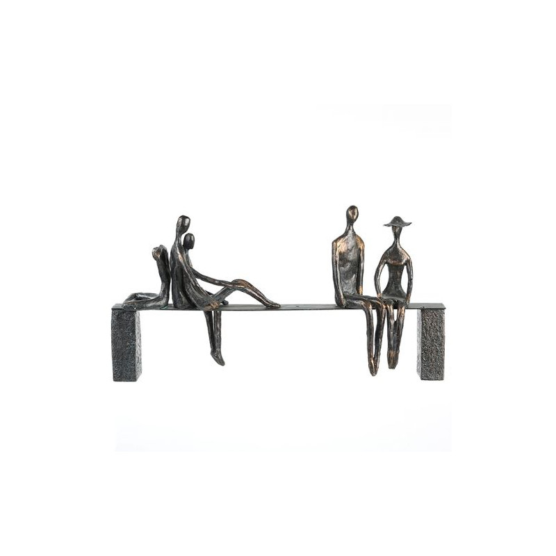Sculpture représentant quatre personnages assis sur un banc, profitant de leur temps libre.