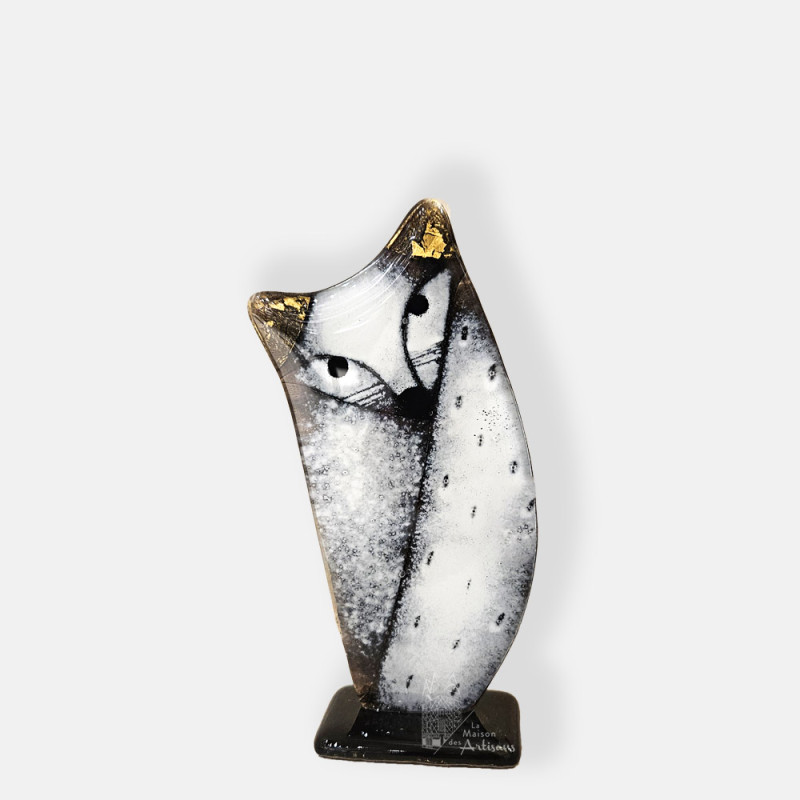 Une statuette représentant un renard polaire stylisé, entièrement réalisée à la main par les maîtres verriers d'art. Existe aussi en taille M et L (liens plus bas), pour une jolie association.