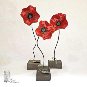 Joli coquelicot en céramique émaillée, par l'atelier grec Rozos. Fait main. Il existe en 3 tailles et apportera une touche de couleur à votre intérieur.