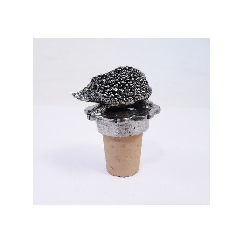 Un bouchon en liège surmonté par un mignon petit hérisson en étain réalisé dans l'un des derniers ateliers d'étain de France.