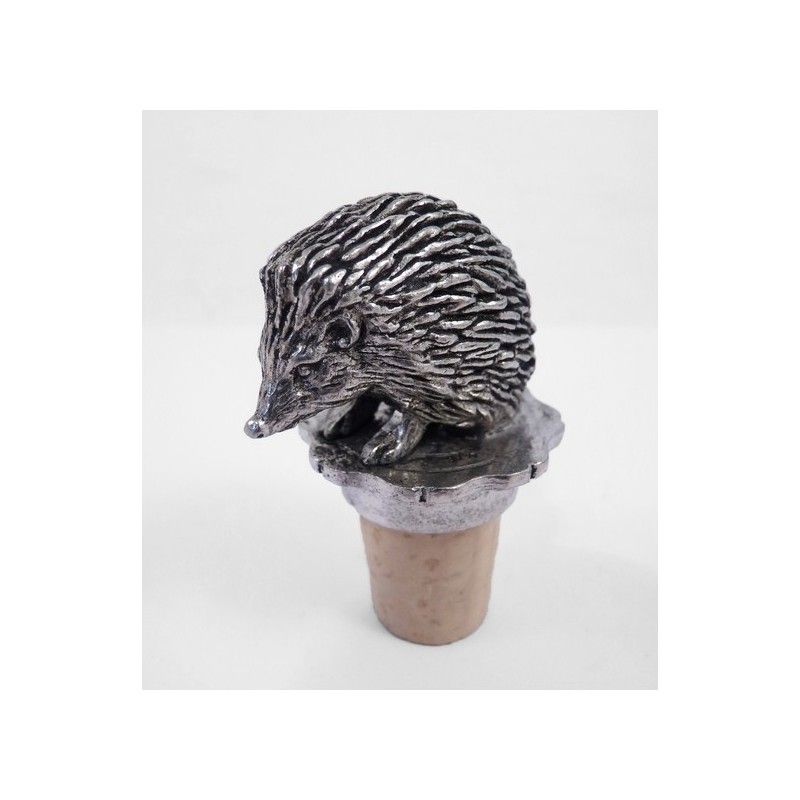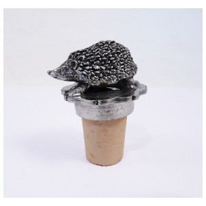 Un bouchon en liège surmonté par un mignon petit hérisson en étain réalisé dans l'un des derniers ateliers d'étain de France.