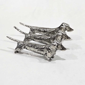 Lot de 6 porte-couteaux Chien Teckel en étain