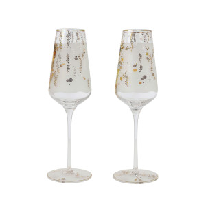 Ce set de deux verres à pied réalisé par l'atelier de verrerie d'art allemand Goebel reprend deux œuvres de Gustav Klimt. Cette création fait partie de la Collection Artis Orbis qui décline de grands tableaux de l'histoire de l'Art en objets décoratifs d'exception à travers lesquels art et artisanat se marient à merveille.
