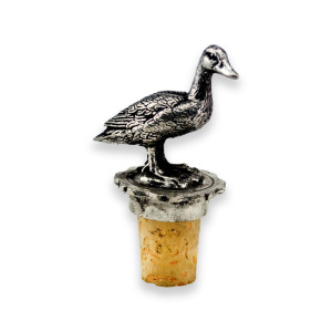 Ce bouchon en liège avec un canard en étain a été réalisé par l'un des derniers ateliers d'étain de France.