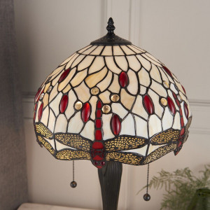 Cette lampe Tiffany fait partie de la collection Dragonfly (Libellule). Ce décor est un classique des motifs Tiffany traditionnels au style Art Nouveau, ici dans des couleurs sobres et élégantes.
