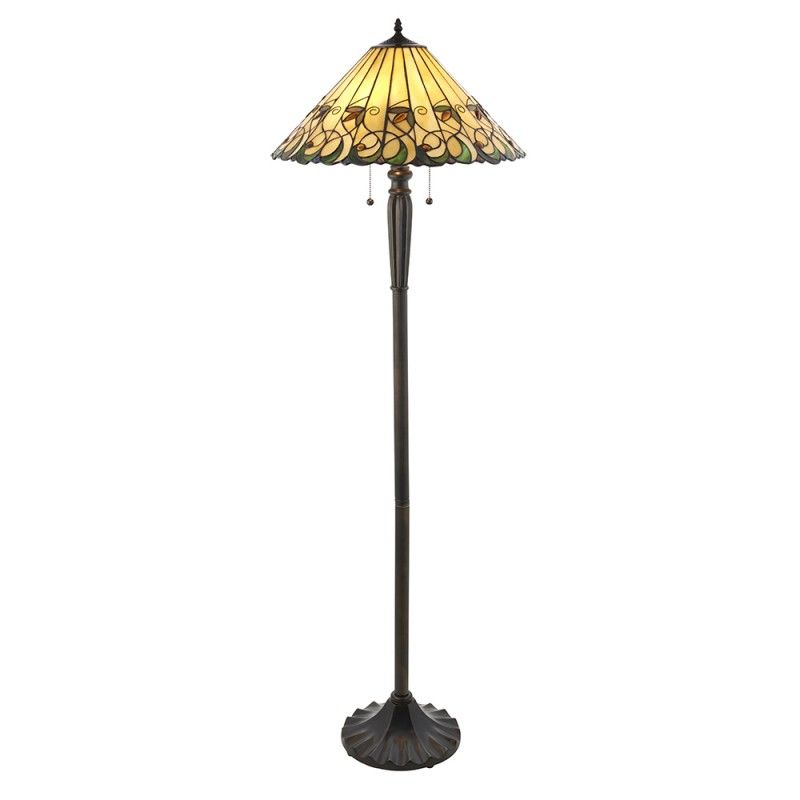 Ce lampadaire Tiffany est une création originale de l'atelier Interiors1900. Son décor simple mais élégant s'inspire dans ses couleurs et ses motifs du thème central de l'Art Nouveau: la nature. On devine ici une plante grimpante s'envolant en volutes dans les airs, et laissant éclater ses fleurs en ses sommets.
