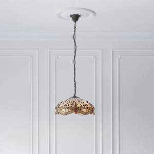 Suspension Tiffany Dragonfly beige - taille medium - 1 chaîne réglable