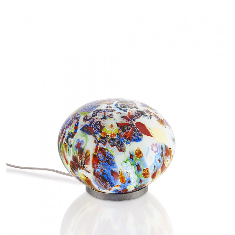 La lampe SUN en verre soufflé se caractérise par l’insertion de murrines (technique ancestrale de travail du verre de Murano). Des baguettes de verres multicolores aux motifs très variés sont fabriquées puis découpées en disques fins. Ces disques sont disposés à plat façon mosaïque puis sont chauffés afin d'être fondus dans la masse.