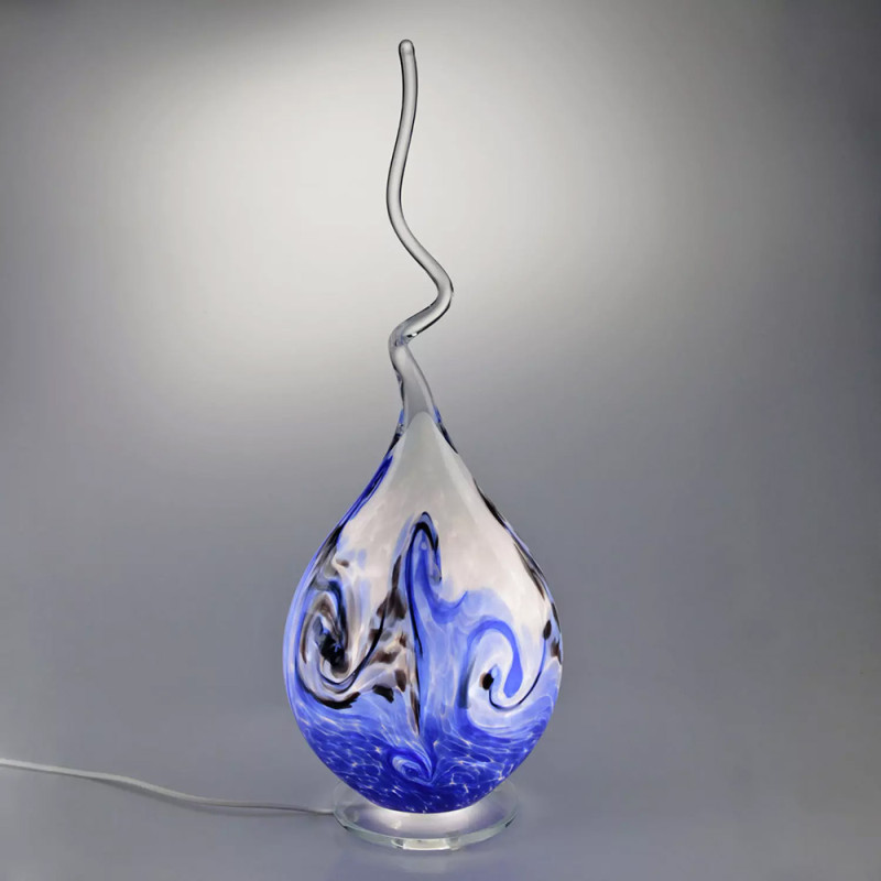 Cette lampe est une superbe création unique réalisée par des maîtres verriers d'art. Elle possède un décor envoûtant à motif spirale.