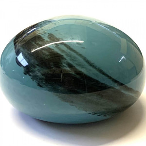 Lampe en verre soufflé bouche, de forme ovale, nommée "Planète", dans les tons bleu / noir.