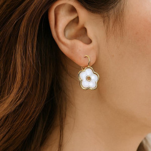Boucles d'oreilles dormeuses dont la nacre est en forme de fleur.