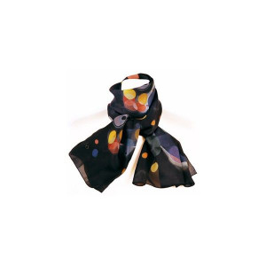 Le décor de cette écharpe en soie et satin de l'atelier Brochier est inspiré de la peinture de Kandinsky "Several Circles" (1926).