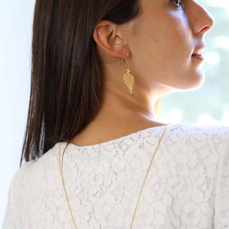 La nature vous offre ces feuilles naturelles d'une grande finesse, d'abord recouvertes par deux couches de cuivre puis trempées dans un bain d'or fin 1000 millièmes ou d'argent rhodié. Ce bijou fabriqué entièrement à la main requiert trois jours de travail particulièrement soigné. Notez que chaque feuille est unique et que par conséquent les photos utilisées ici ne sont qu'illustratives.