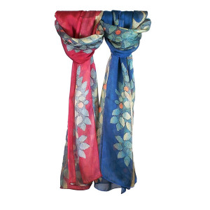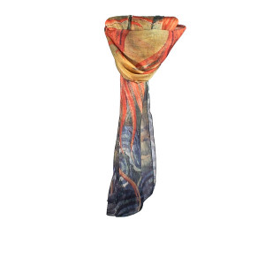 Le décor de cette écharpe en soie de l'atelier Brochier est inspiré d'un détail de l’un des six panneaux de la Tenture de l’Apocalypse d’Angers. Véritable chef d'oeuvre du Moyen-Âge, cette tapisserie a été tissée à la fin du XIVe siècle par l'atelier de Nicolas Bataille d’après les cartons d’Hennequin de Bruges pour le Duc Louis 1er d’Anjou.