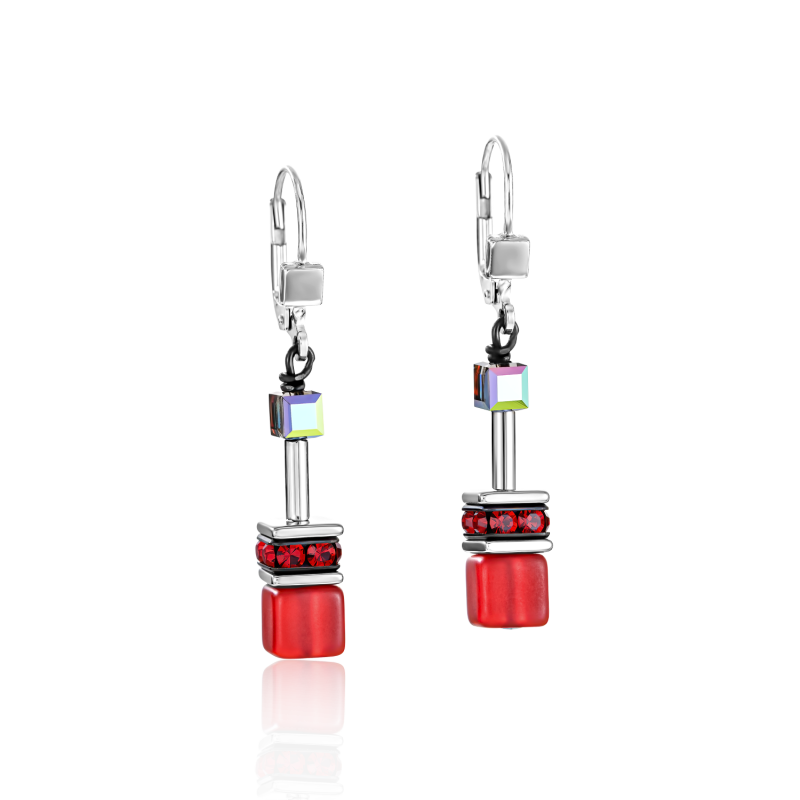 Boucles d'oreilles Cubes Hématite - rouges