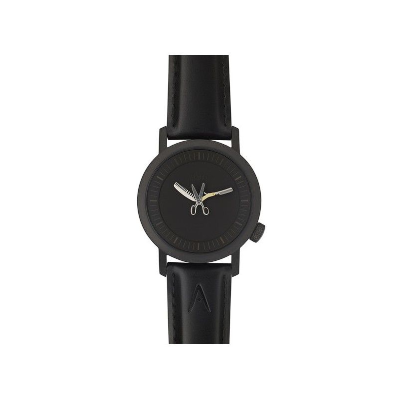 Une montre qui met en avant le thème de la coiffure à travers ses détails ciseaux et peignes.