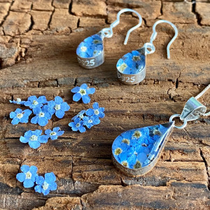- Bijou monté sur argent 925, crée avec de vraies fleurs de Myosotis.