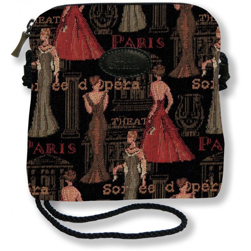 Ce ravissant petit sac à bandoulière dépoussière l'art de la tapisserie à la française! Il possède un décor élégant "soirée parisienne à l'opéra" sur fond noir tissé sur métier Jacquard.