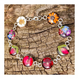Bracelet argent et véritables fleurs