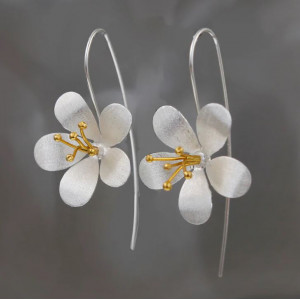 "Tout commence à la fin des années 90, dans un champ au festival de Glastonbury (Angleterre). Après une nuit de danse intense, nous admirons le lever du soleil sur le site. Une expérience vraiment magique. Puis nous repérons une pâquerette solitaire qui se distingue des pâturages verts, et l'idée nous vient de capturer ces merveilles naturelles afin de créer de magnifiques bijoux. Les bijoux Shrieking Violet sont fabriqués à la main avec de l'argent et de toutes petites fleurs qui sont encapsulées dans de la résine. Notre jardinier en chef surveille attentivement les fleurs et les soigne avec amour (et de l'eau) jusqu'à ce qu'elles atteignent la taille parfaite. Elles sont ensuite soigneusement cueillies, conservées et associées dans de belles créations à porter en bijoux."