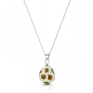 "Tout commence à la fin des années 90, dans un champ au festival de Glastonbury (Angleterre). Après une nuit de danse intense, nous admirons le lever du soleil sur le site. Une expérience vraiment magique. Puis nous repérons une pâquerette solitaire qui se distingue des pâturages verts, et l'idée nous vient de capturer ces merveilles naturelles afin de créer de magnifiques bijoux. Les bijoux Shrieking Violet sont fabriqués à la main avec de l'argent et de toutes petites fleurs qui sont encapsulées dans de la résine. Notre jardinier en chef surveille attentivement les fleurs et les soigne avec amour (et de l'eau) jusqu'à ce qu'elles atteignent la taille parfaite. Elles sont ensuite soigneusement cueillies, conservées et associées dans de belles créations à porter en bijoux."