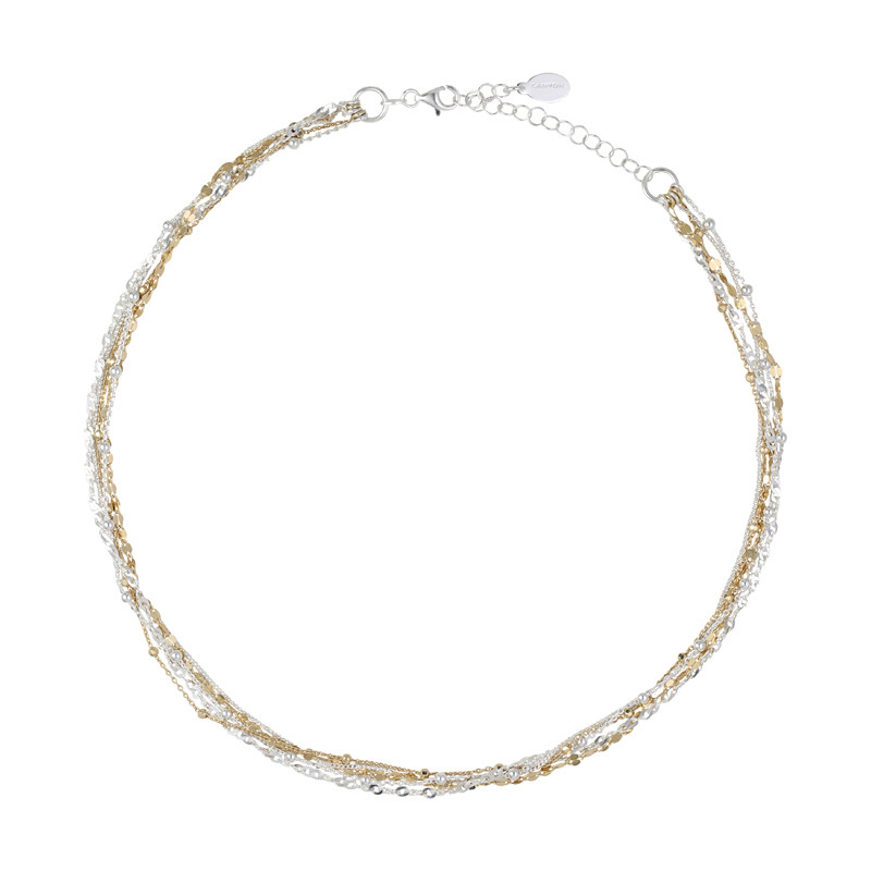 Le collier en argent Priam tire son originalité du mix argent / or. Il s'accorde aussi bien avec un style décontracté qu'avec une élégante robe du soir. Ce collier fin et délicat s'associe facilement avec d'autres bijoux de la collection, dont les bracelets Maddy et Adela.