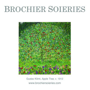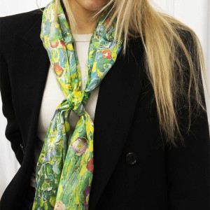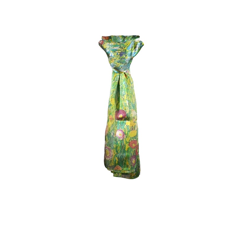 Cette écharpe en soie et bandes de satin s'inspire de la peinture de Gustav Klimt "Apple Tree" ou "Le Pommier" (1912).