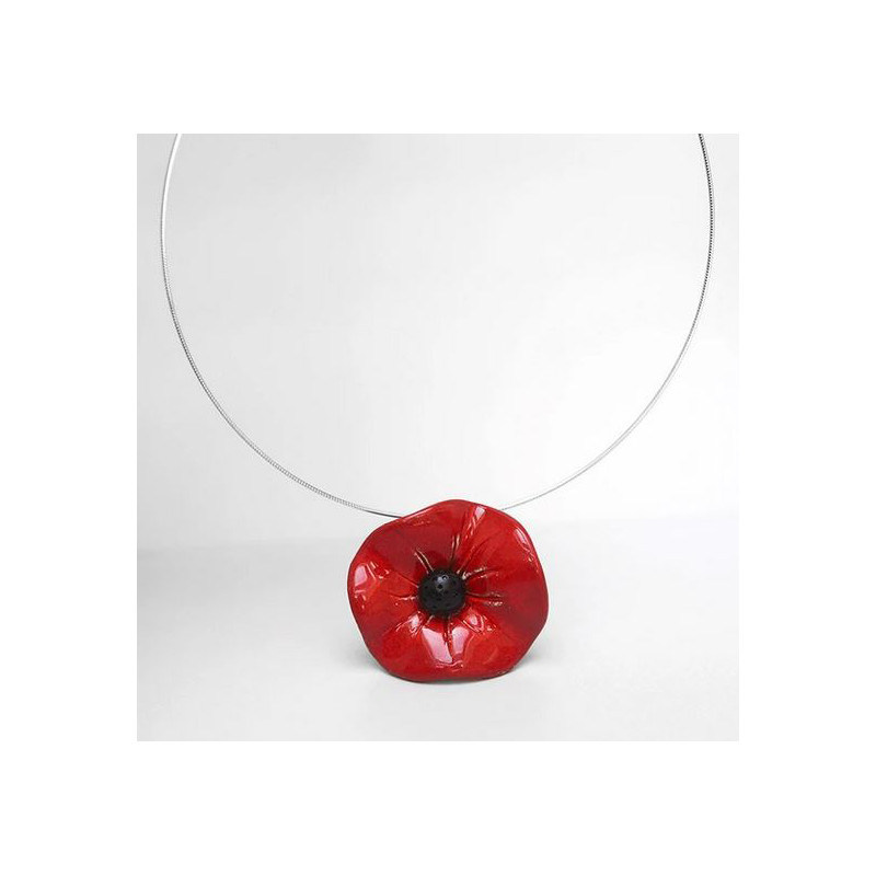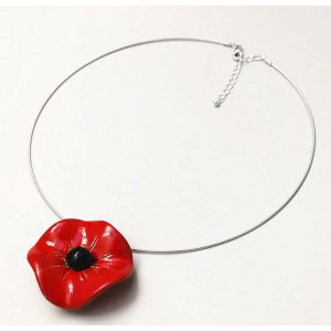 Collier fermé avec un gros Coquelicot en céramique et tour de cou en argent