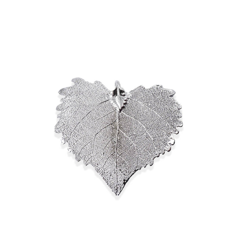 La Nature vous offre cette feuille d'une grande finesse, d'abord recouverte par deux couches de cuivre puis trempée dans un bain d'or rose, d'or fin 1000 millièmes ou d'argent rhodié.