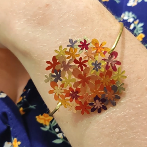 Avec son mélange harmonieux de fleurs aux tons orangés, ce joli bracelet coloré saura réveiller et donner du peps à n'importe quelle tenue !